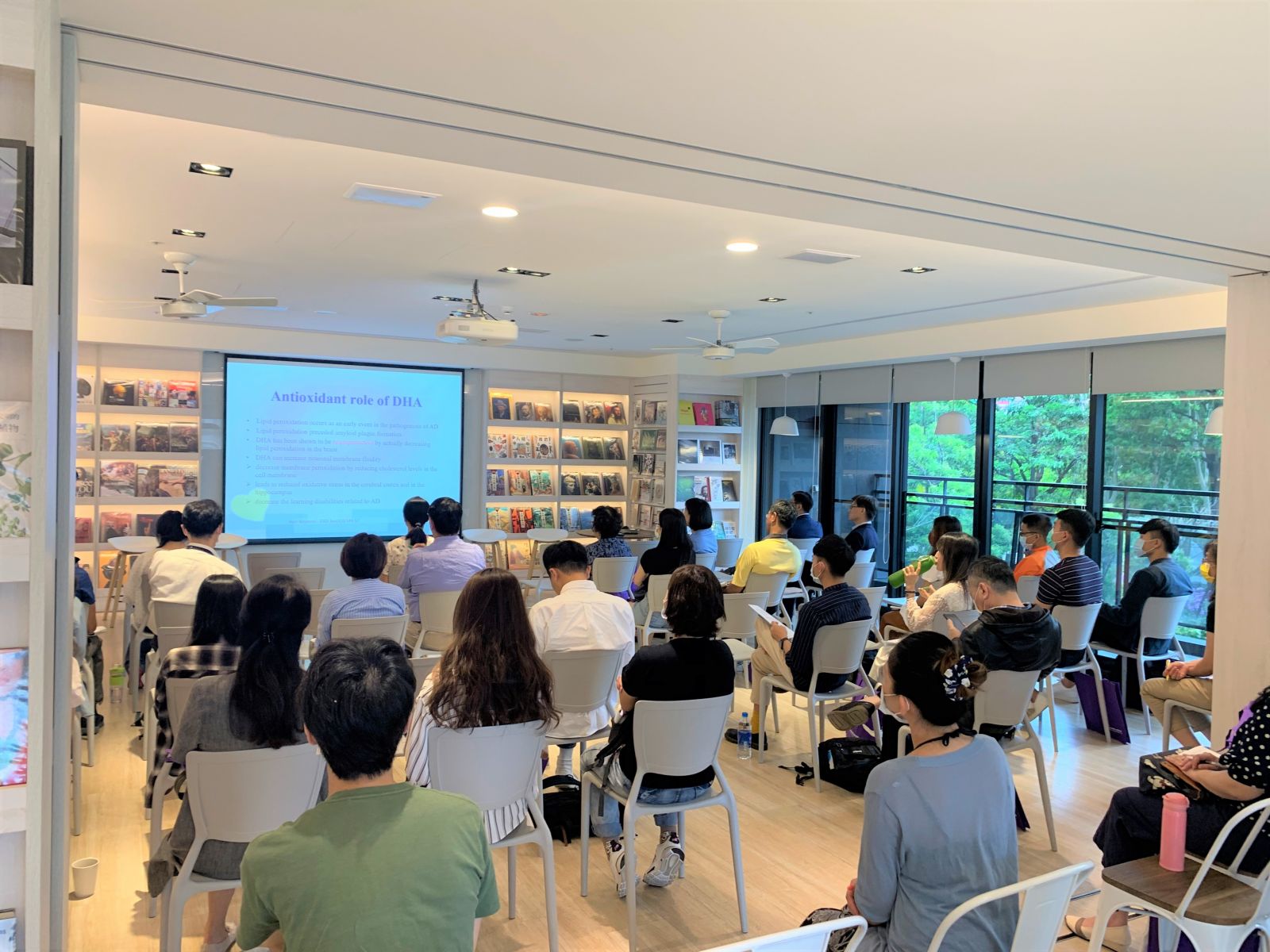 活動在座長蘇冠賓及徐國強 教授的開場中展開,接著由謝明鴻醫師分享Omega-3與失智症之間不為人知的闗係。台灣未來因為少子化,獨居老人逐年增加(活到老很好但失智症比例也跟著增加),所以要如何活的健康及預防失智症才不會成為彼此的負擔,講座中使我們了解營養的補充相對於預防失智症之重要性!不應吃太多飽合脂肪酸及反式脂肪,要多吃非飽和脂肪酸(Omega-3)及多做有氧運動。