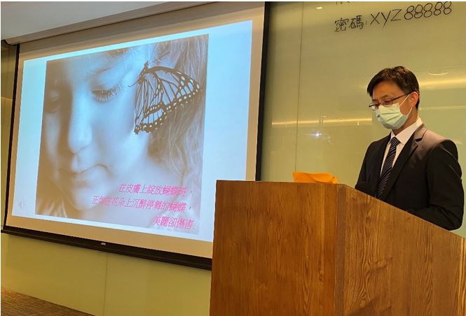 講座開始由童綜合醫院過敏免疫風濕科主任邱瑩明醫師,以「免疫病人的愛與哀愁」為題,分享全身性紅斑性狼瘡患者發病後的挑戰,包含生活品質明顯受到身體症狀困擾、疾病不確定感、社會支持或復原力的影響、對疾病的認識與磨合、起伏的情緒、穩定前的摸索等,邱醫師強調,臨床醫護同仁應協助患者了解疾病資訊、學習健康管理並面對疾病、調適情緒與生活上的改變。有相關研究發現,合併憂鬱對預後有很大的影響,而patient reported outcome會是醫師在照護病人時,一個較簡易方便的工具可以及早發現病人情緒問題。