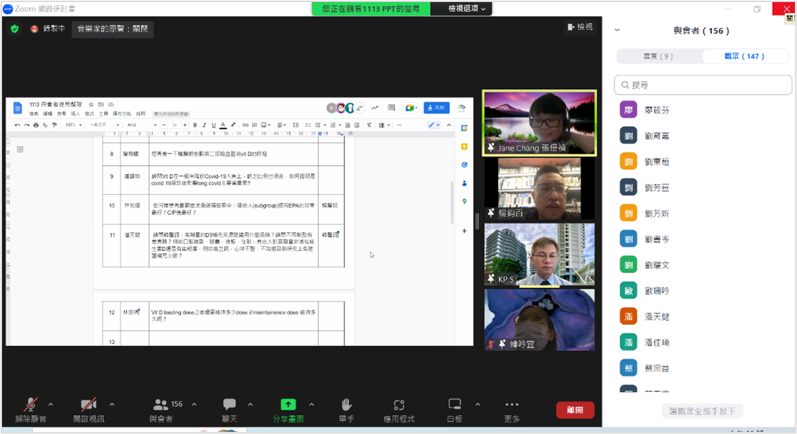 本場活動吸引近200位醫療專業人員線上參與,與會者熱烈提問,在本會張倍禎理事長的主持下,講者及與會者充份進行了討論與交流,為本日講座畫下精采的句點。