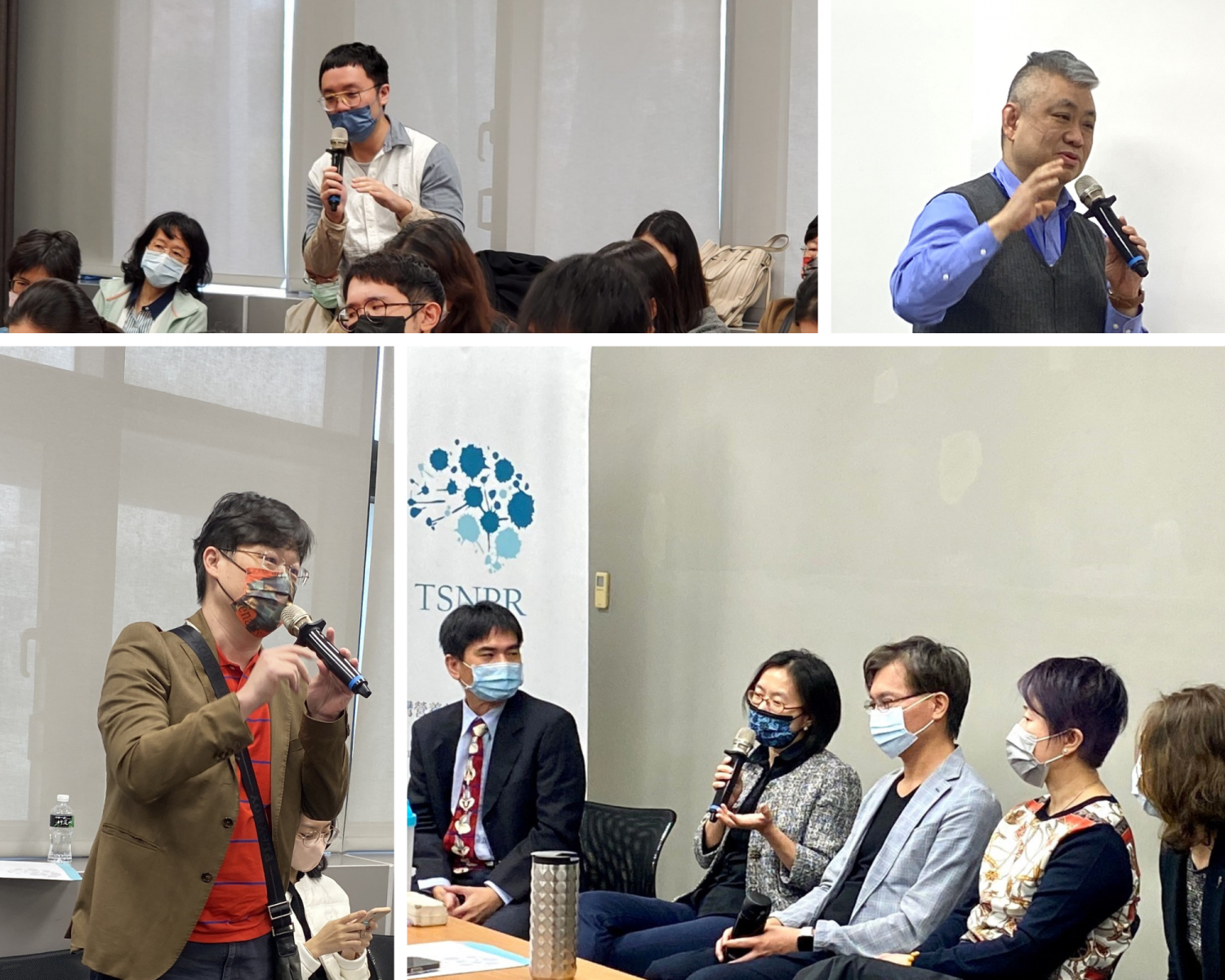 認真的主持人:邱偉哲醫師(左上)、劉惠青醫師(左下)及專業的講師王明鈺醫師(右上)、李昭慧心理師(右中)、蘇冠賓教授(右下)。
