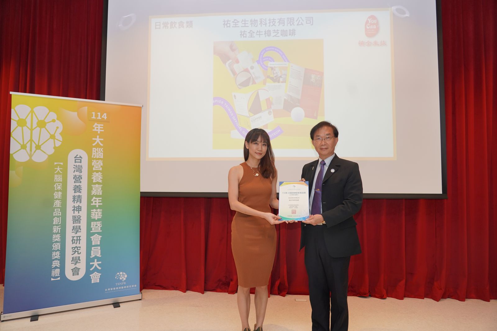 「台灣艾特維股份有限公司」代表領獎 本屆大腦保健創新產品獎獎盃及獎狀