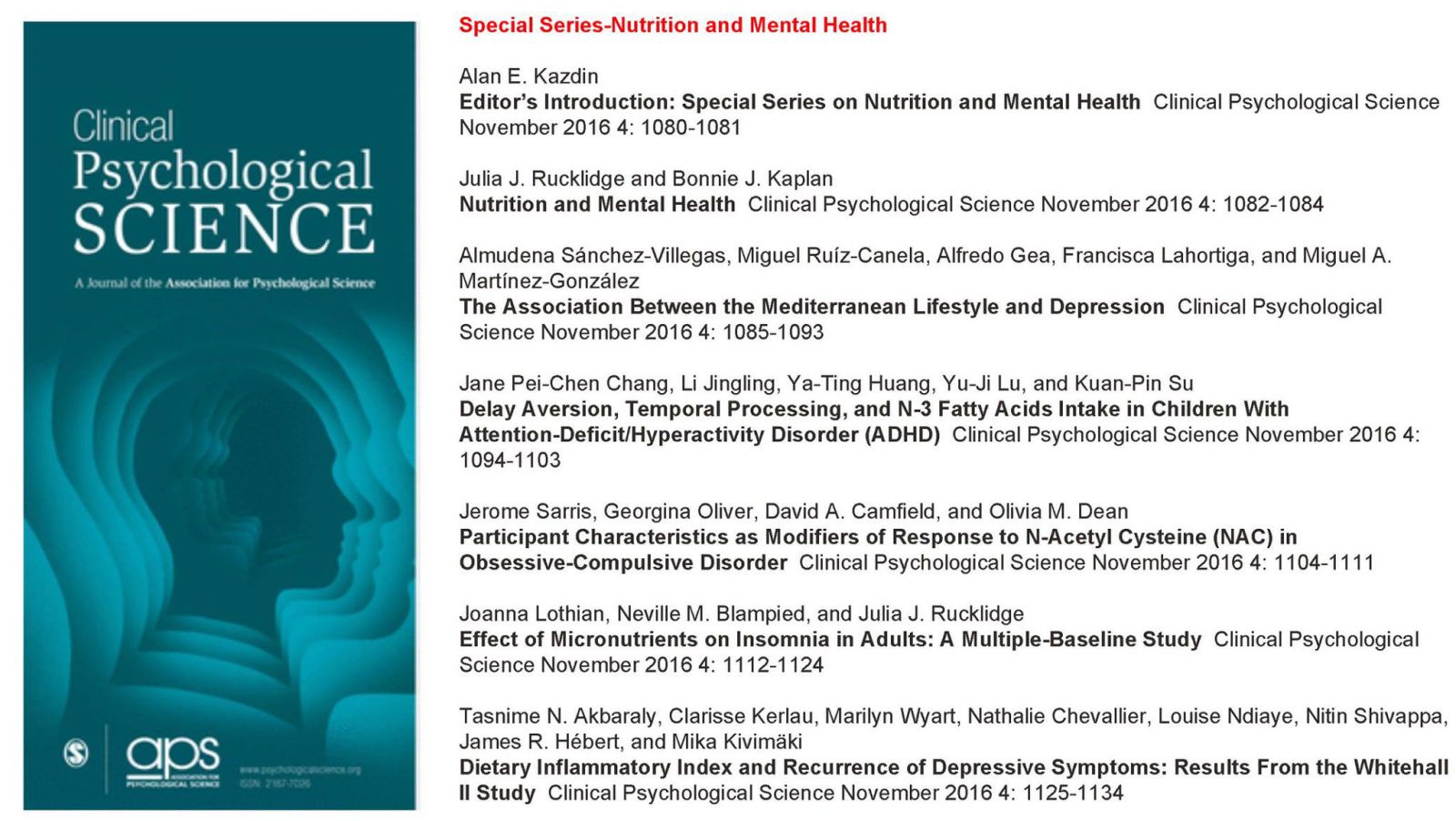 恭喜本學會張倍禎理事在 n-3不飽和脂肪酸(PUFAs)與過動症(ADHD)的研究結果,刊登於最近一期的Clinical Psychological Science中的Nutrition and Mental Health特刊中。論文連結