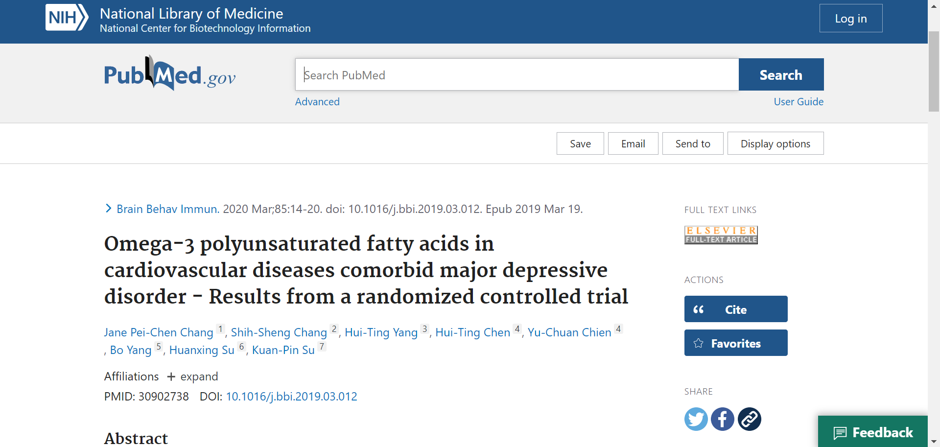 Omega-3不飽和脂肪酸在心血管疾病伴隨重鬱症的療效-來自隨機對照試驗結果Omega-3 polyunsaturated fatty acids in cardiovascular diseases comorbid major depressive disorder─ [‧‧‧‧‧]