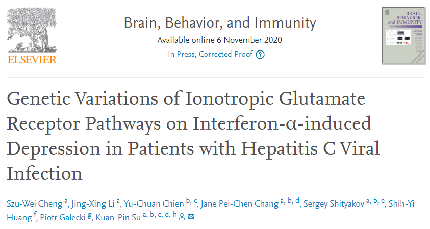 抗鬱新曙光~研究發現憂鬱症成因新機轉 台灣研究團隊近期發表了全世界第一個在神經傳導物麩胺酸 (Glutamate) 受體上的憂鬱症基因研究,研究結果發表於國際知名期刊《大腦,行為和免疫》(Brain, Behavior, and Im [‧‧‧‧‧]